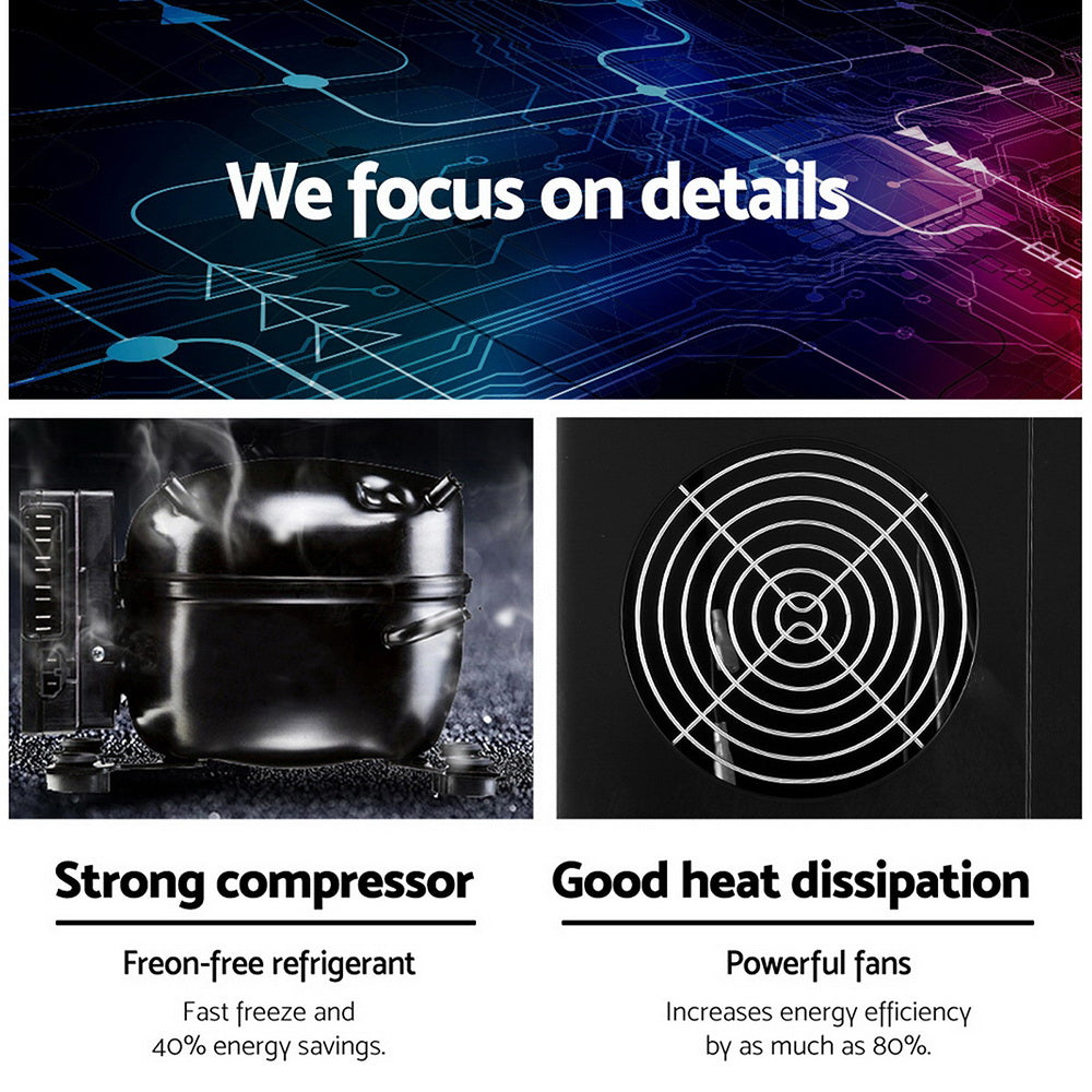Looking for ice in a hurry? Meet our Devanti Ice Maker! Quickly produce 9 ice cubes in 6-13 minutes, with the flexibility to choose from 2 sizes. It's loaded with smart features like water shortage and ice full alarms, plus energy-saving technology through Freon-free refrigerant and enhanced heat dissipation. Its sleek, compact design fits anywhere, and with its easy-to-use controls, you’ll be enjoying cold beverages in no time. Ice at home has never been cooler!