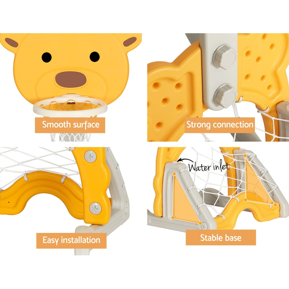 Keezi Kids Basketball Hoop Stand Adjustable 5-in-1 Sports Center Toys Set Yellow