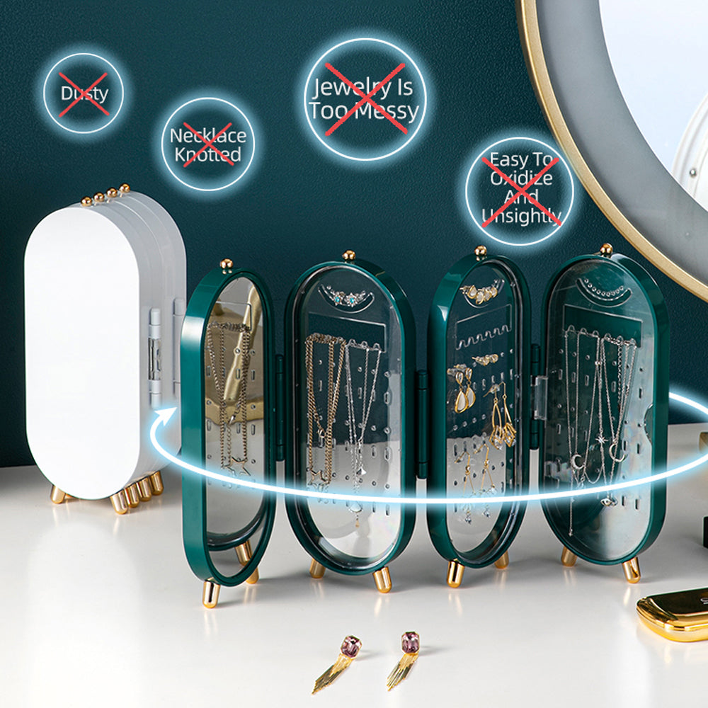 Jewellery Storage Box Earrings Display Necklace Organizer 4 Doors Foldable Screen (White)