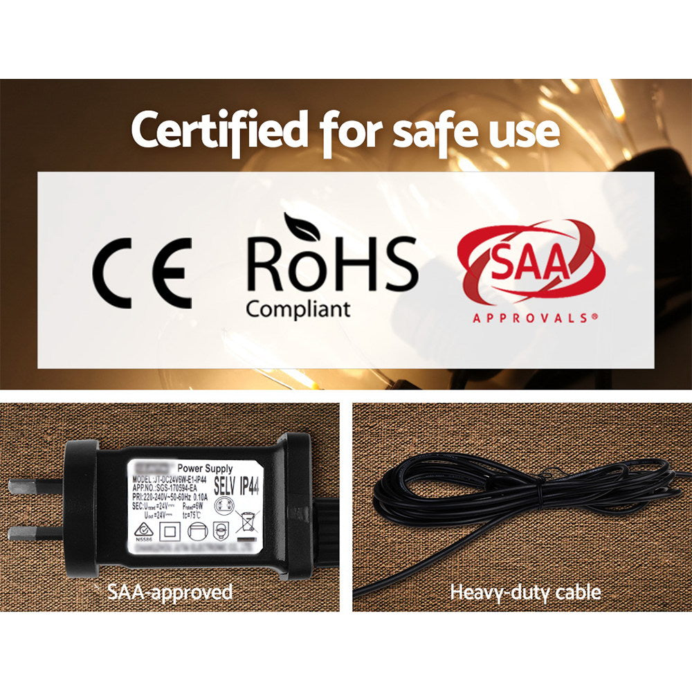 Our Festoon String Lights are great not only for wedding and birthday parties or special events, but also for creating a warm, inviting ambience with its bright and mellow glow. Suitable for both indoor and outdoor use, its IP44 rating means that it can be used in the rain and all weather conditions. Each bulb draws a very low voltage and is placed 90cm equally apart from each other throughout its 59m length for an even distribution of illumination and brightness. Not least, the each bulb has a 20,000 hours lifespan so that you can get to use the string lights for quite a while.