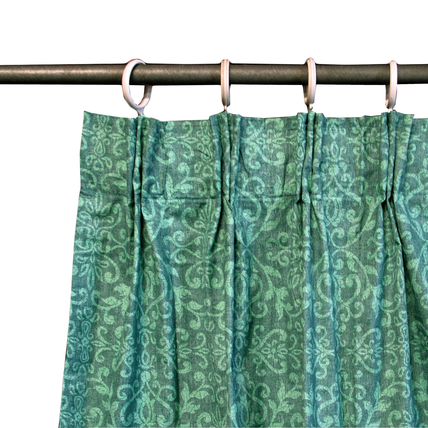 Pair of Acrylic Coated Damask Green Tape Edge Curtains