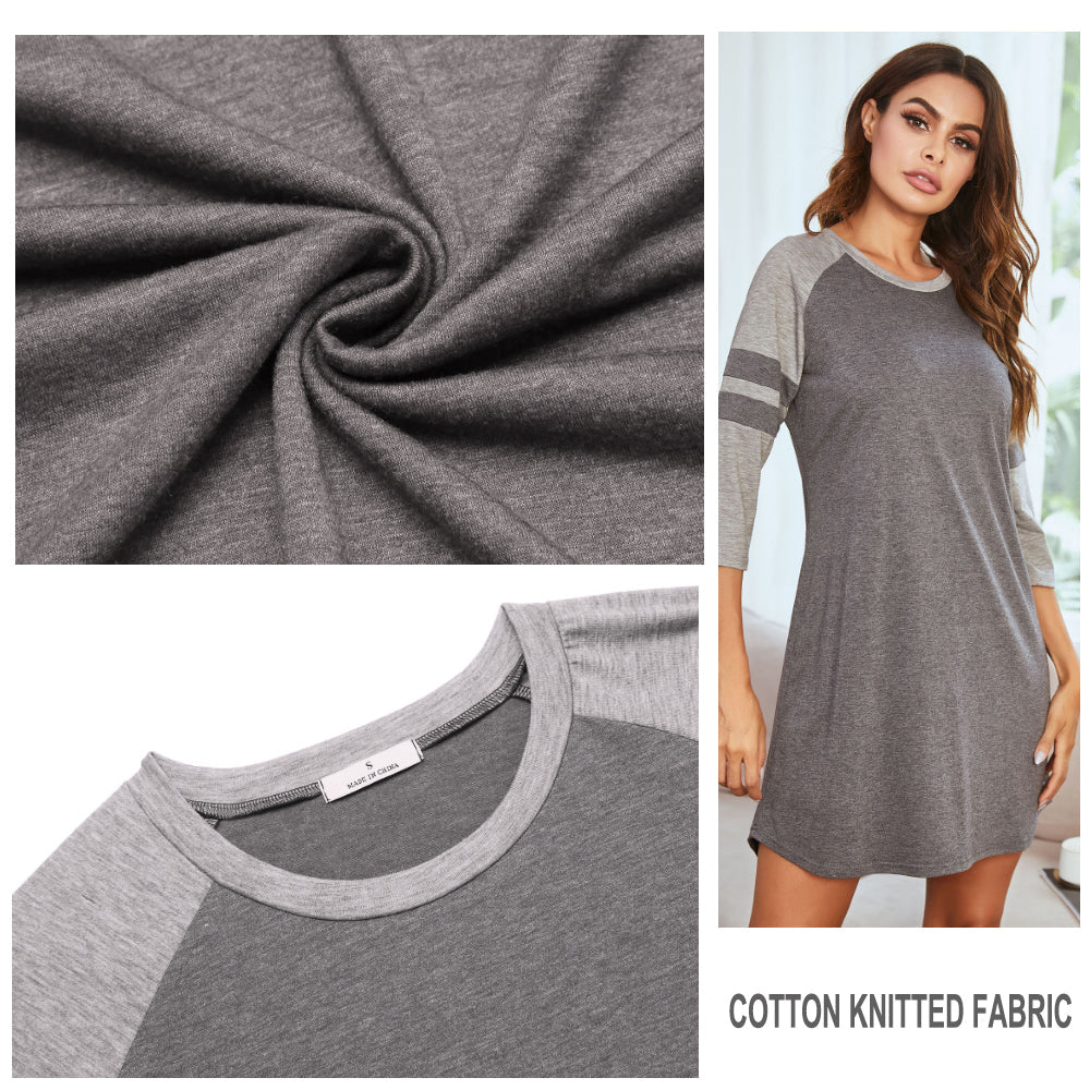 Color Matching Design: The nightgown features a color combination of deep gray and light gray, adding a stylish and elegant touch to your sleepwear.