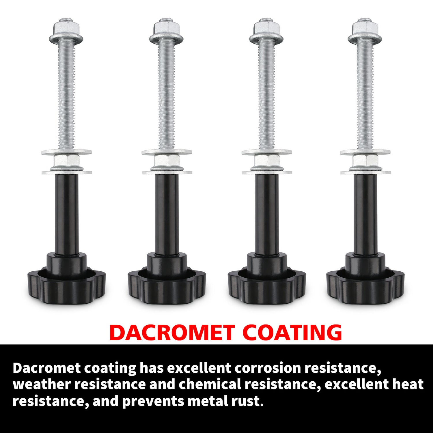 These mounting hardwares will securely mounting your X-BULL recovery tracks on a roof rack or baes. The set includes 4 pins which can securely hold 2-X-BULL recovery tracks, 8 iron nuts and 8 flat iron washer.